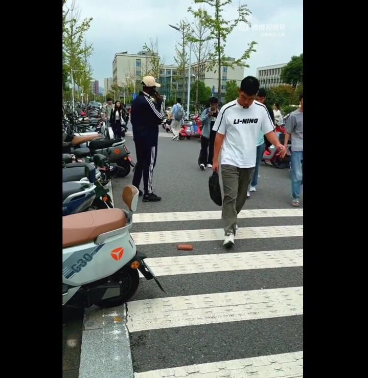 微博で36万のフォロワーを持つアカウントが転載した動画には、フランス語で「中国で財布を落としちゃった」との字幕が付けられており、中国の街中で黒人男性がスマートフォンを取り出しながら財布をわざと地面に落とす様子が映っている。