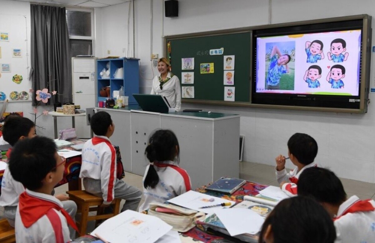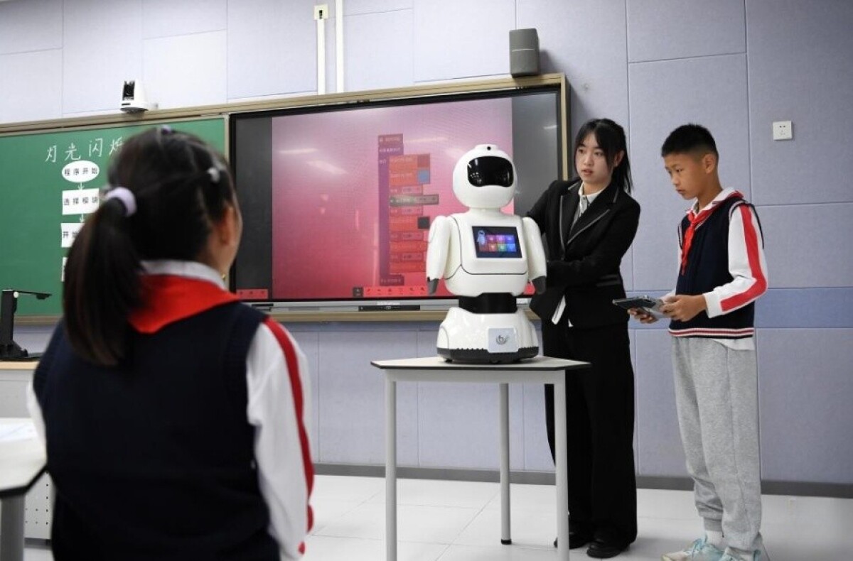「2025年革新教育実践研修シリーズ活動」が10月15日、北京市海淀区第四実験小学校で行われた。写真は「点滅信号」をテーマとするAI公開授業でプログラミングに挑戦する児童。