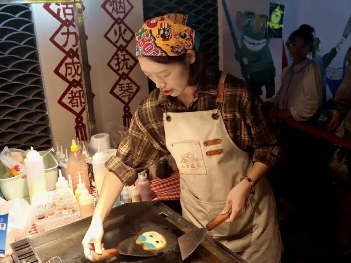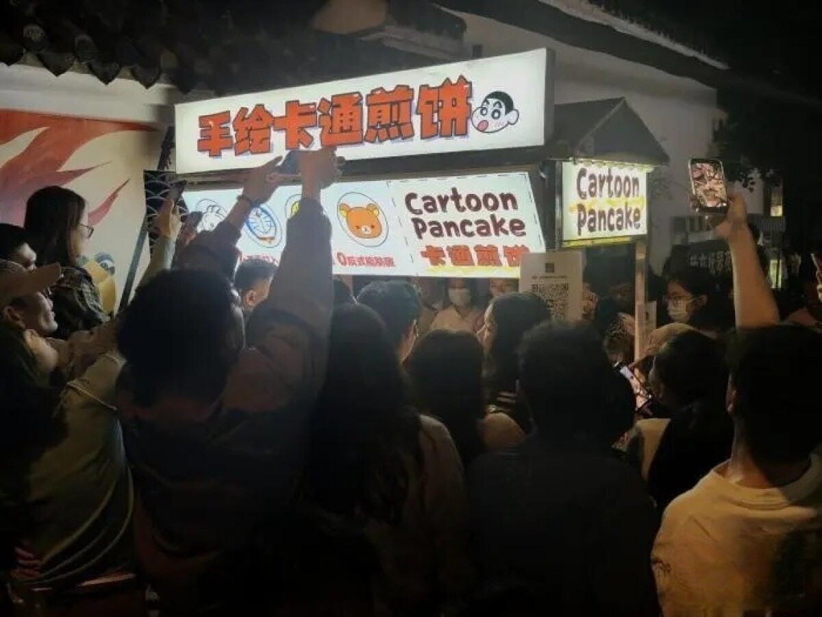 成都市内にあるオーダーメイドのパンケーキを作る屋台が人気を集めている。